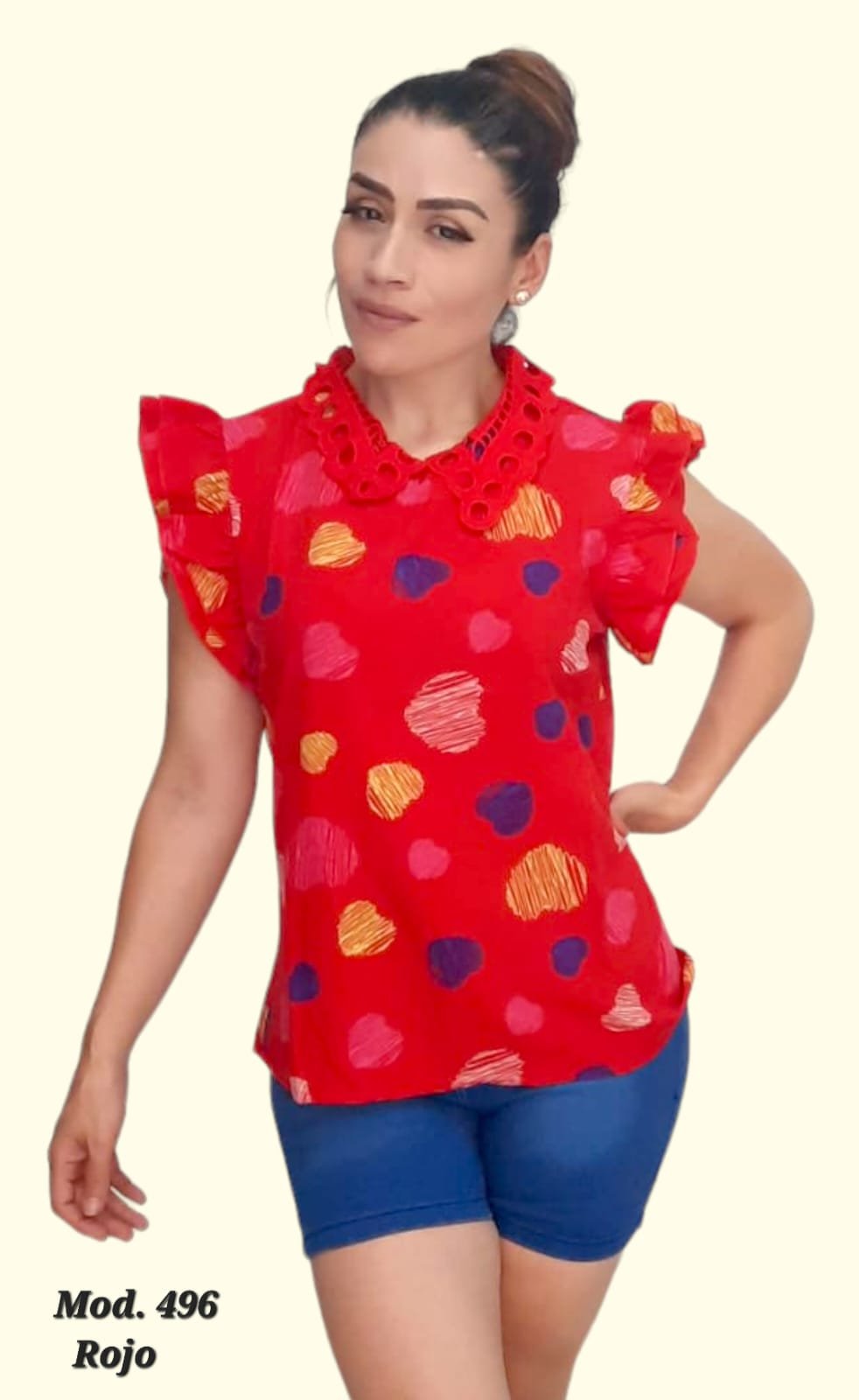 BLUSA DE CUELLO CON DISEÑOS.
