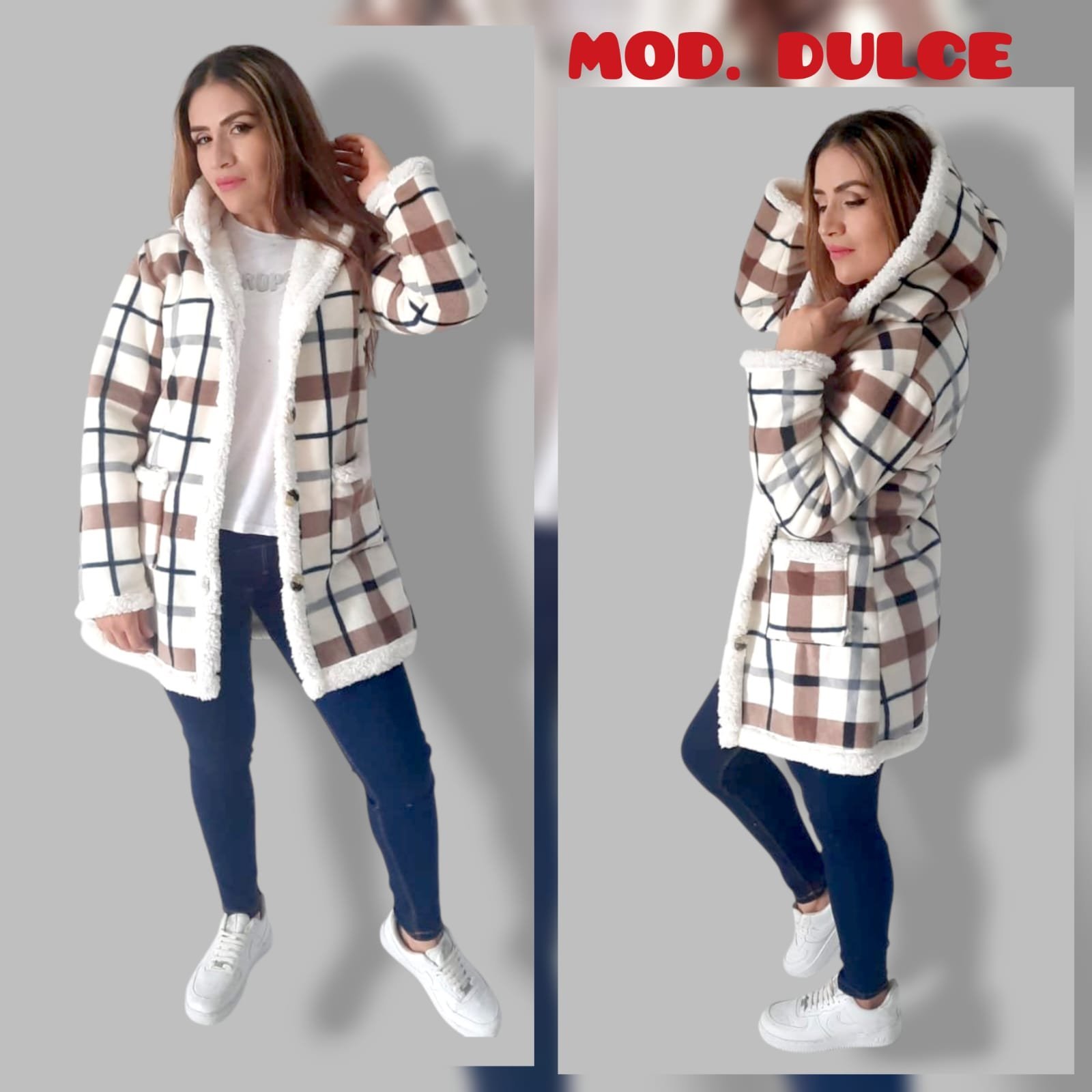 CAZADORA ABORREGADA DULCE BEIGE/CAFE UNITALLA (30 A 34).