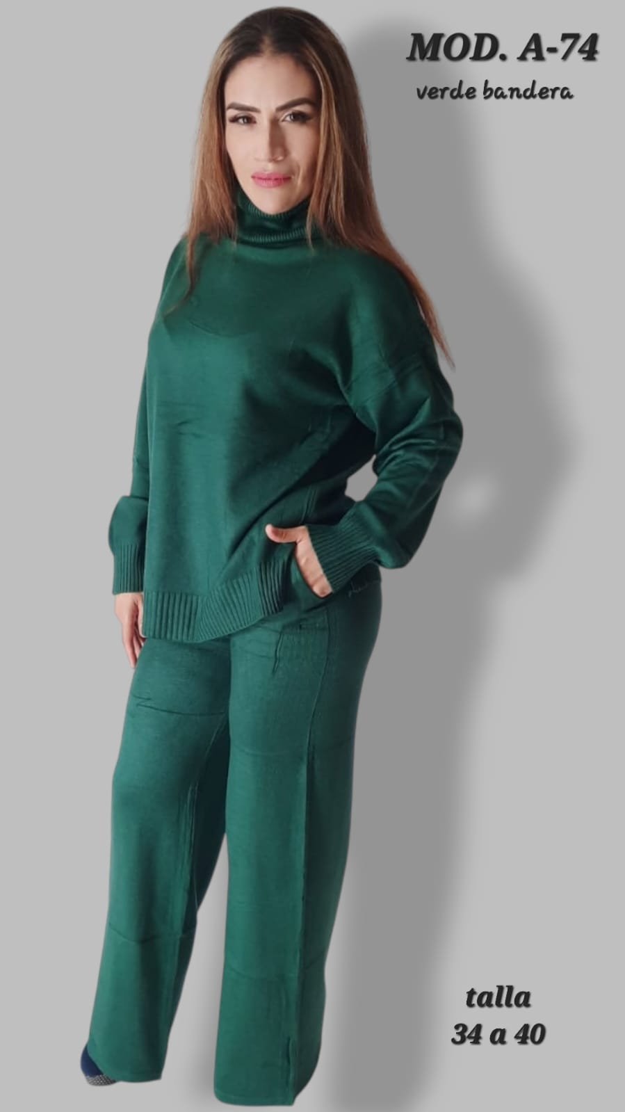 CONJUNTO TEJIDO A-74 VERDE BANDERA TALLA (34 A 40).