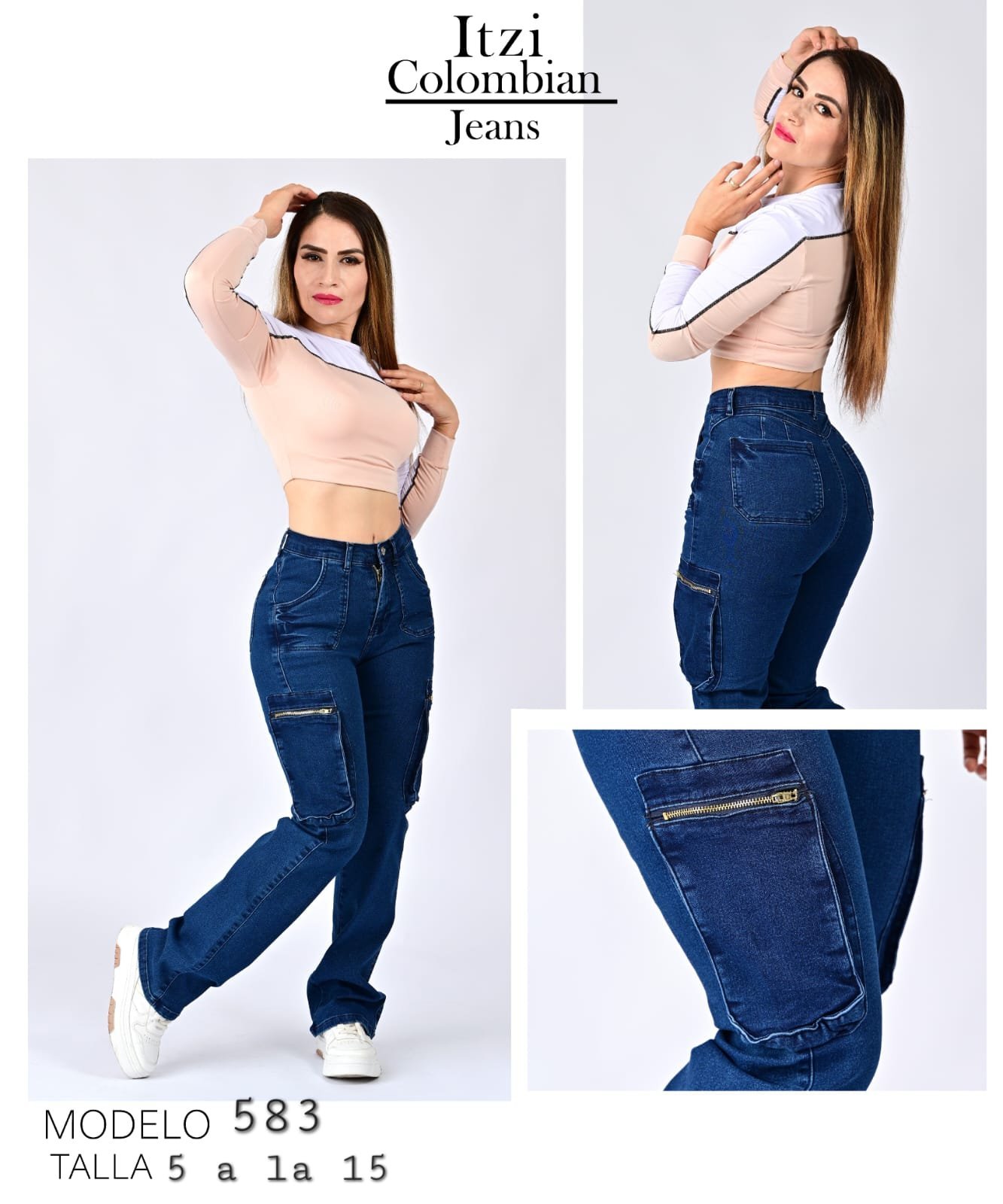 Pantalón de mezclilla de dama corte vaquero acampanado Itzi Colombian Jean´s.