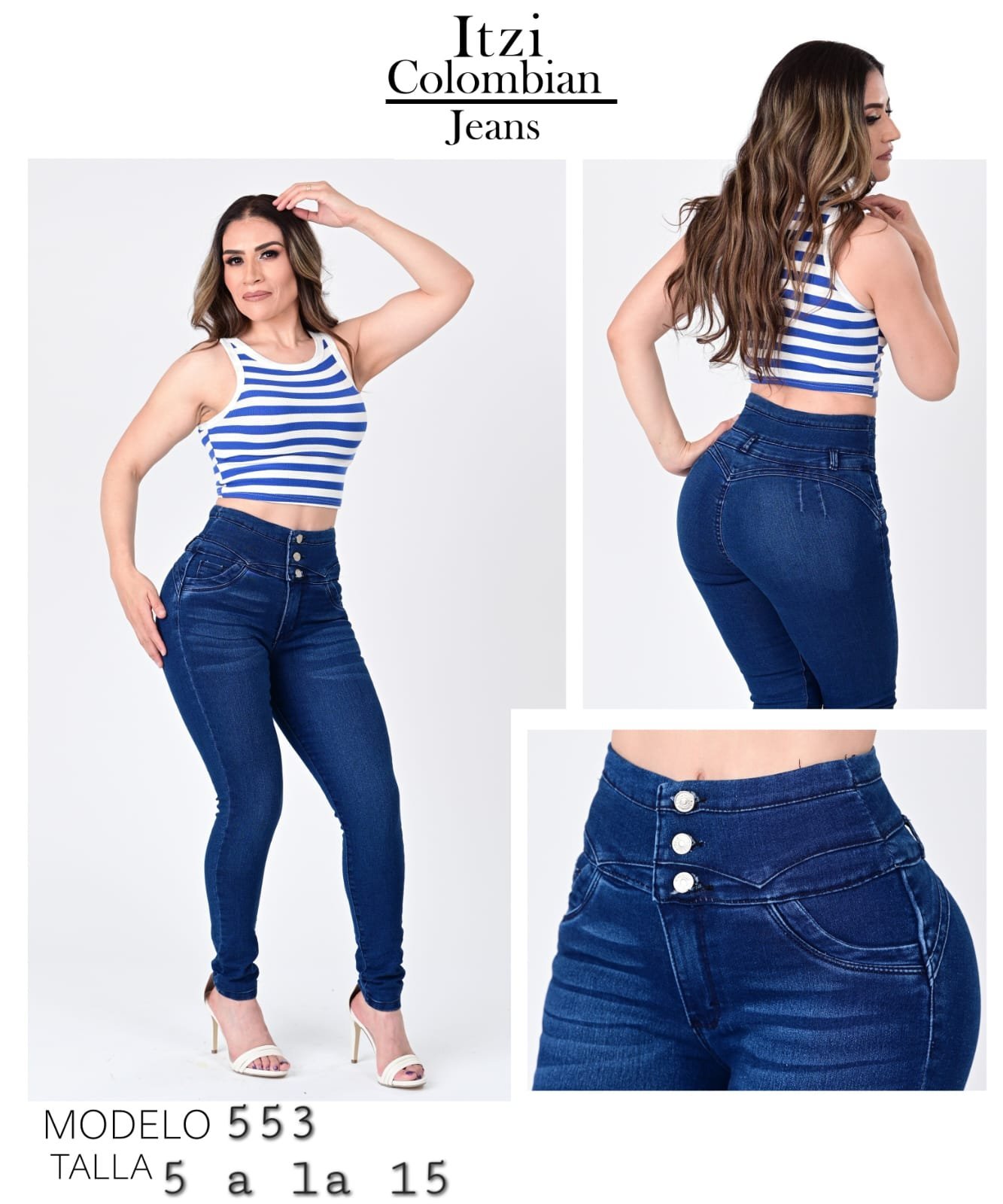Pantalón de mezclilla de dama corte colombiano Itzi Colombian Jean´s.
