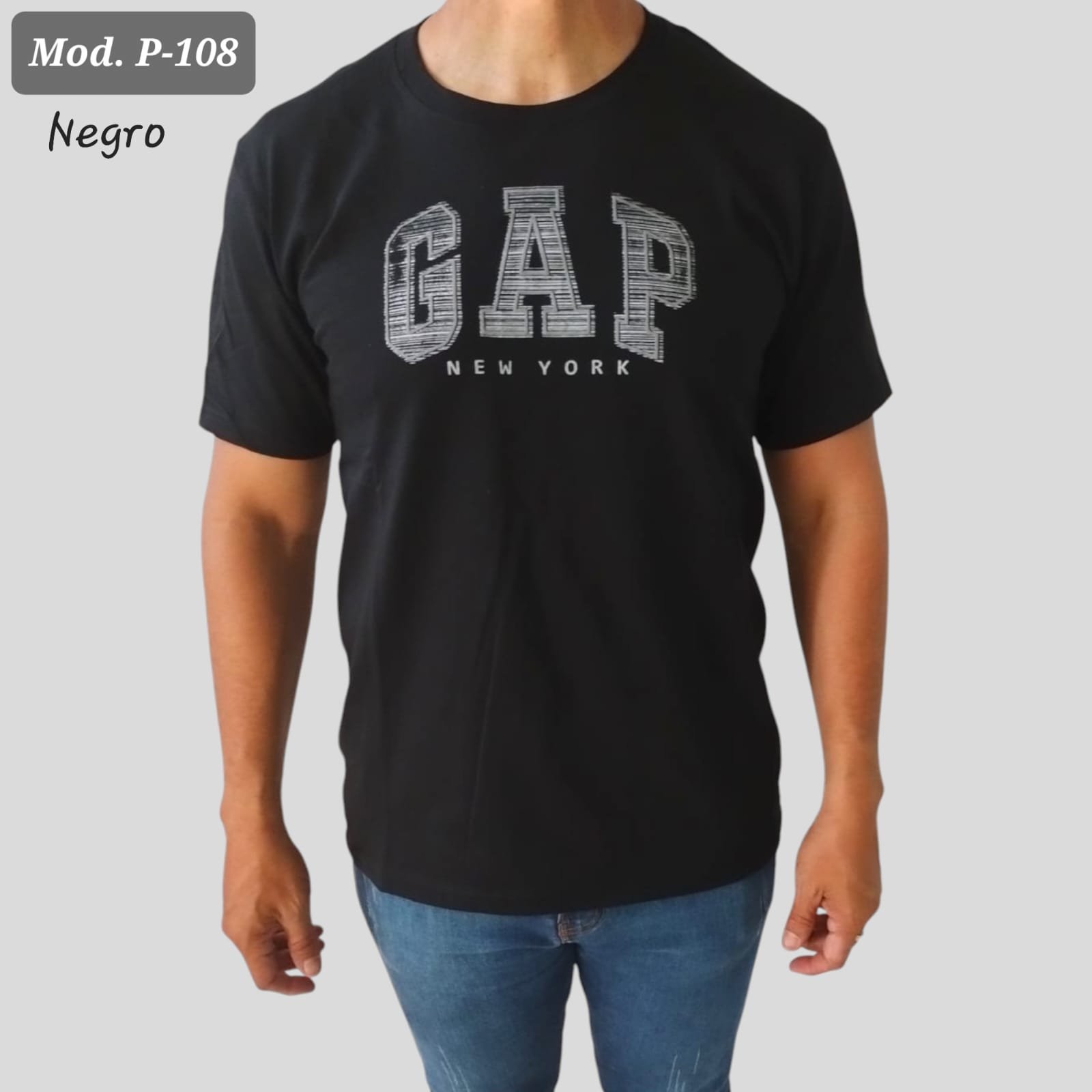 PLAYERA DE CABALLERO P 108 NEGRO.