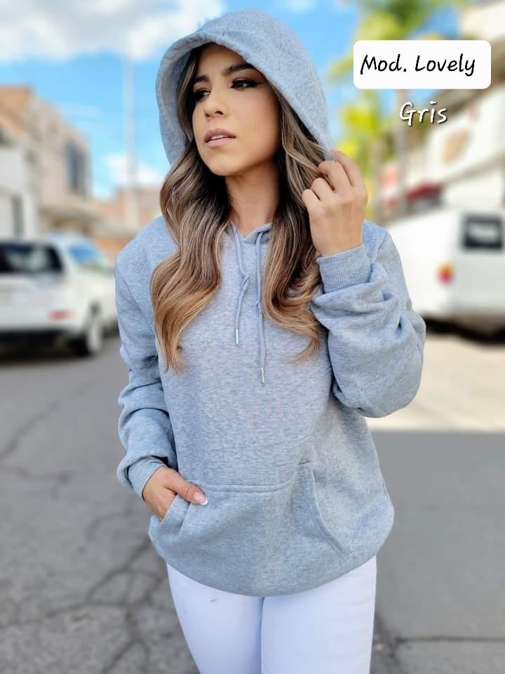 SUDADERA DE DAMA CON FELPA STRECH Y GORRO AJUSTABLE.