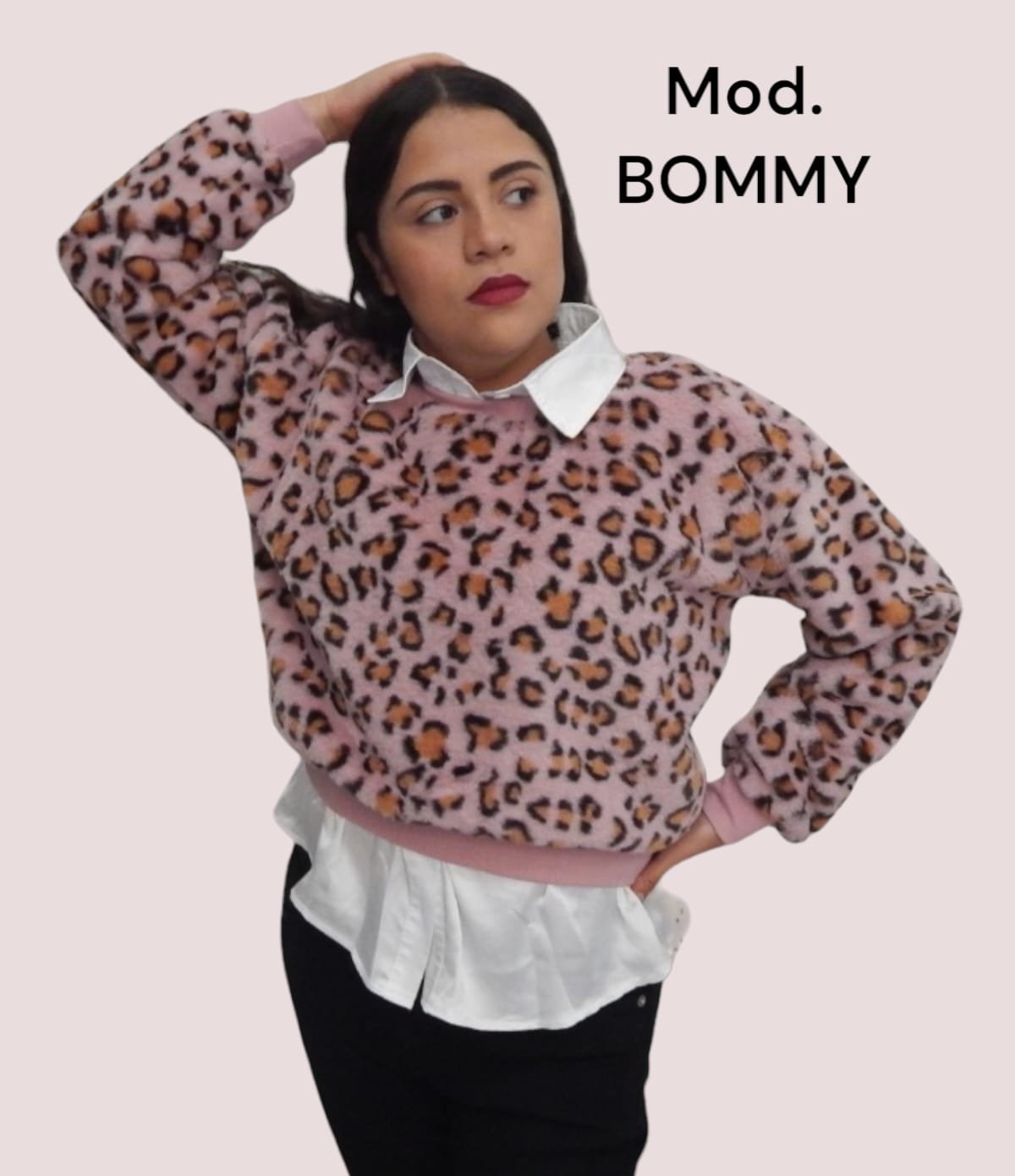 Suéter color rosa con estampado de leopardo unitalla (30-34)